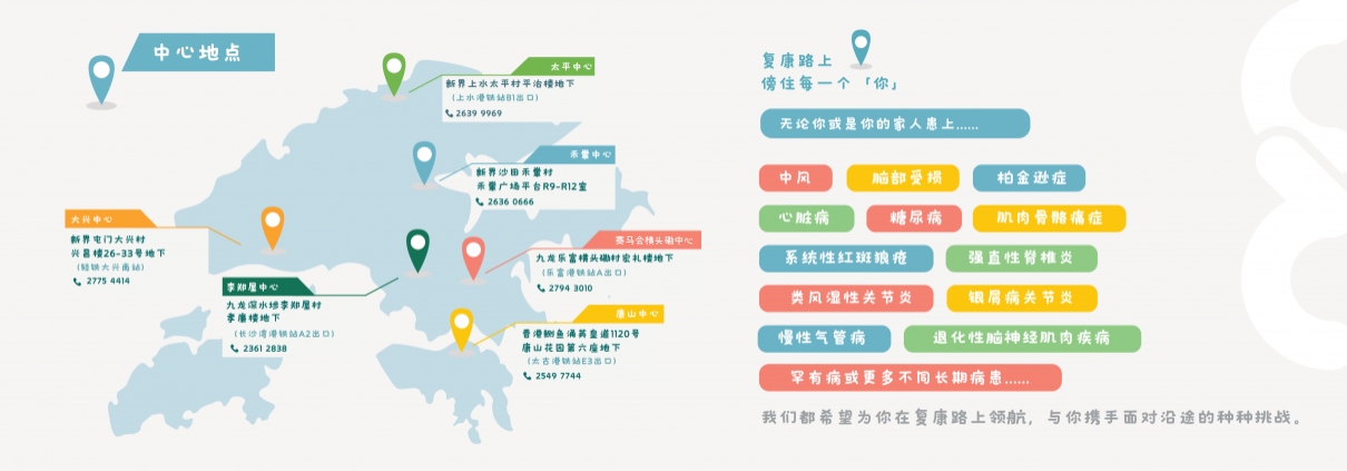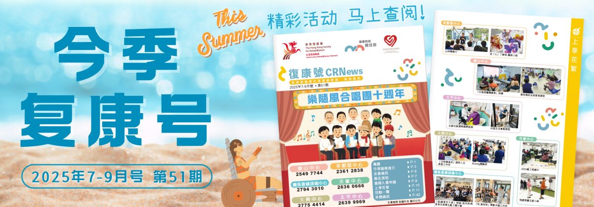 自1994年,香港复康会社区复康网络(CRN)以为长期病患者及照顾者提供一站式复康服务为使命,由社工、心理健康主任、注册护士、物理治疗师及职业治疗师等组成跨专业团队,为长期病患者及照顾者提供支援,并促进同路人自助互助,让你及早面对和适应患上及陪伴长期病的生活,务求以不同的模式来为你提供最优质的服务。不论你或你家人患上什么疾病,我们社区复康网络都会时刻傍住你。