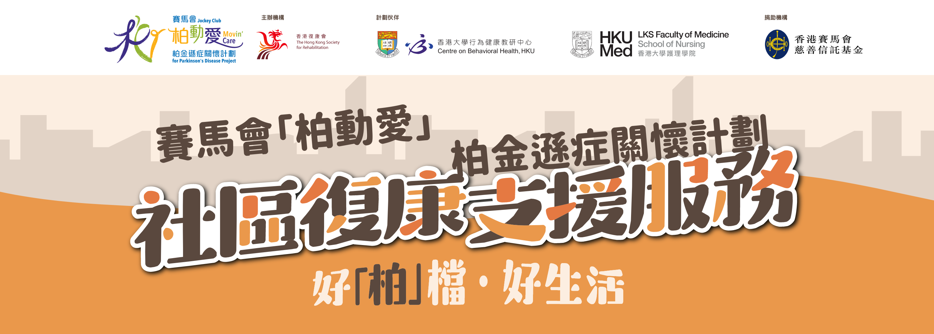 赛马会「柏动爱」柏金逊症关怀计划(2023-2026)获香港赛马会慈善信托基金捐助,由香港大学行为健康教研中心及护理学院与香港复康会合办,旨在为柏金逊症相关社群建立全面及可持续的社区关怀服务模式,推广「早关注患症风险、早诊断并接受复康支援、早护理身心健康」,同时推动整体社会参与关怀柏金逊症。