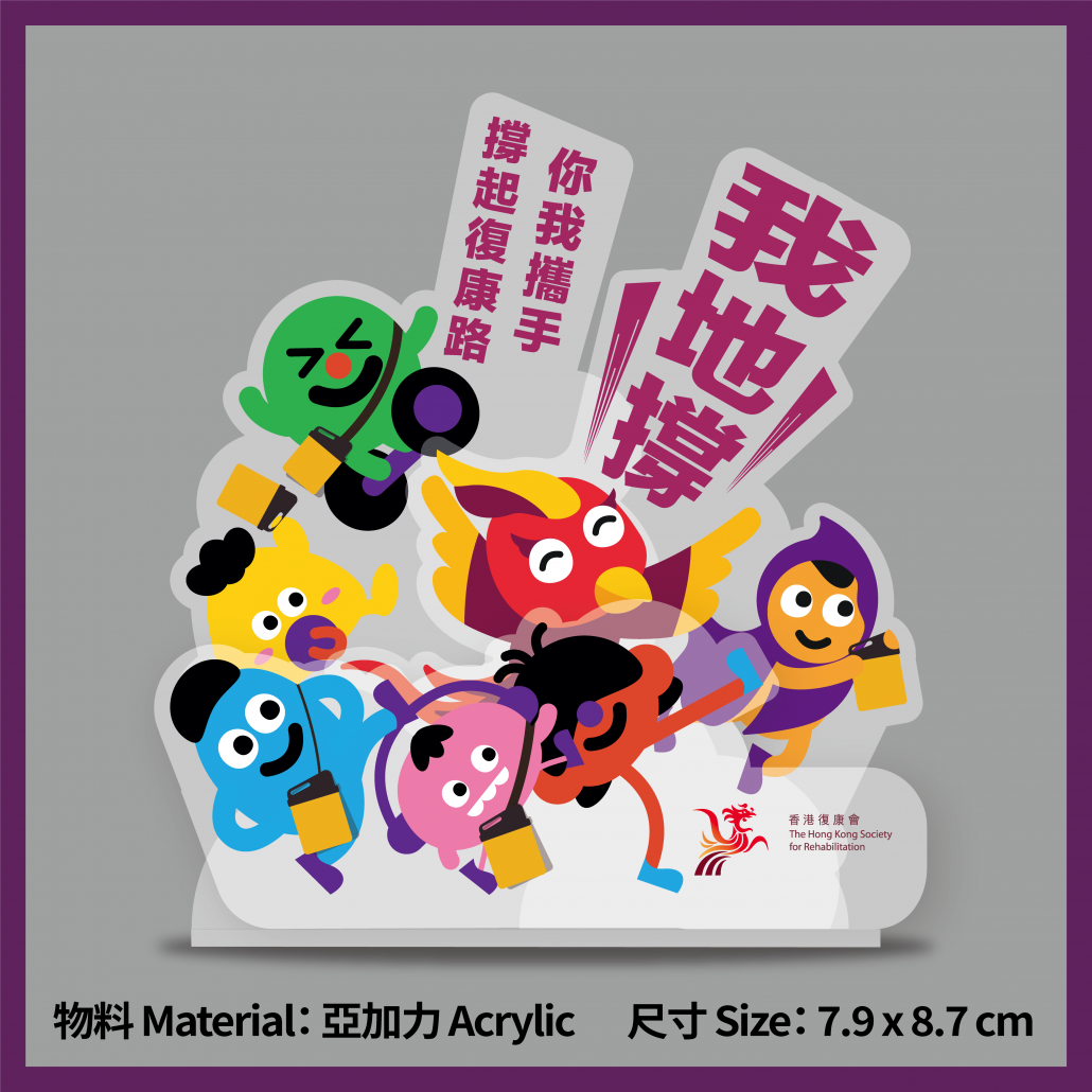 Our six “Barrier Busters” signify people with different degree of disabilities in our society. They may face limitations and challenges in their daily lives as well as in their process of rehabilitation. Yet, with appropriate rehabilitation services and most importantly social support, they can and have the ability to restore their potentials and participate in the community and live a fulfilling life with dignity.