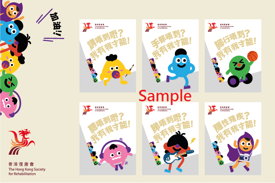 To disseminate the message of “Promoting Social Inclusion, Building a Caring Society”, we have rolled out limited-edition gold flag sets with the theme of our six mascots, each represents a disability or health challenge that persons with disabilities are facing every day. Despite their difficulties, they are able to unleash their potentials in life and lead a fulfilling life full of dignity. We hereby invite you to kindly support them by subscribing our gold flag sets.