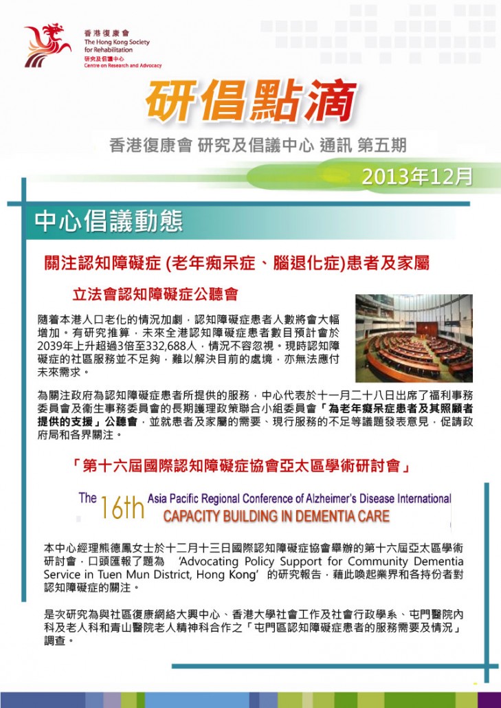 從ICF角度看殘疾 - 香港殘疾人士和長期病患者在活動和社會參與的困難報告