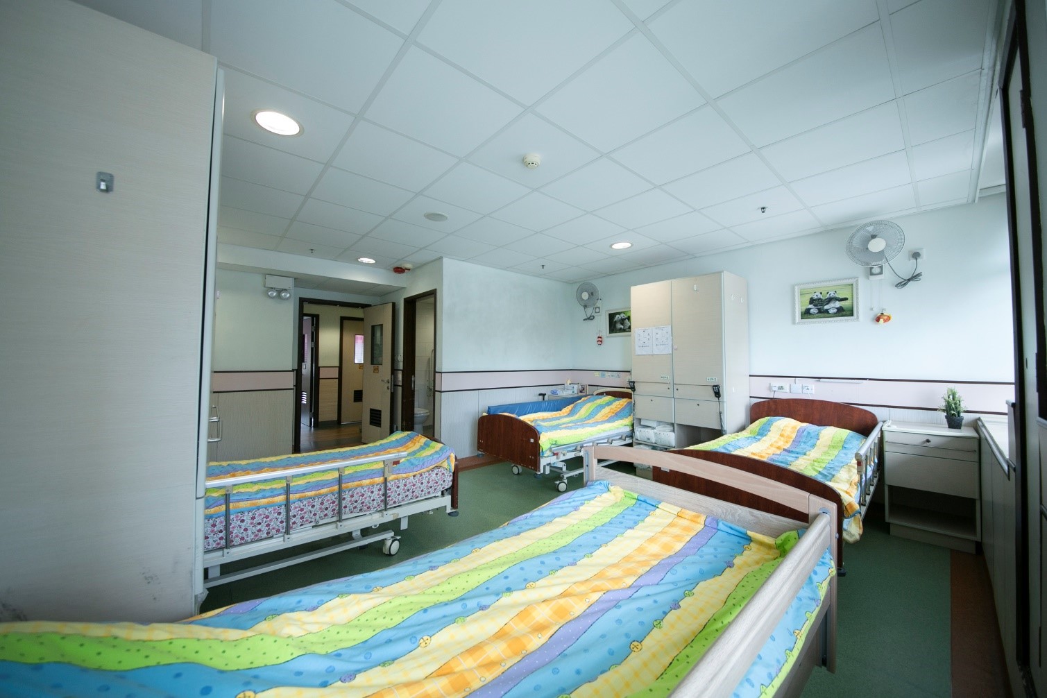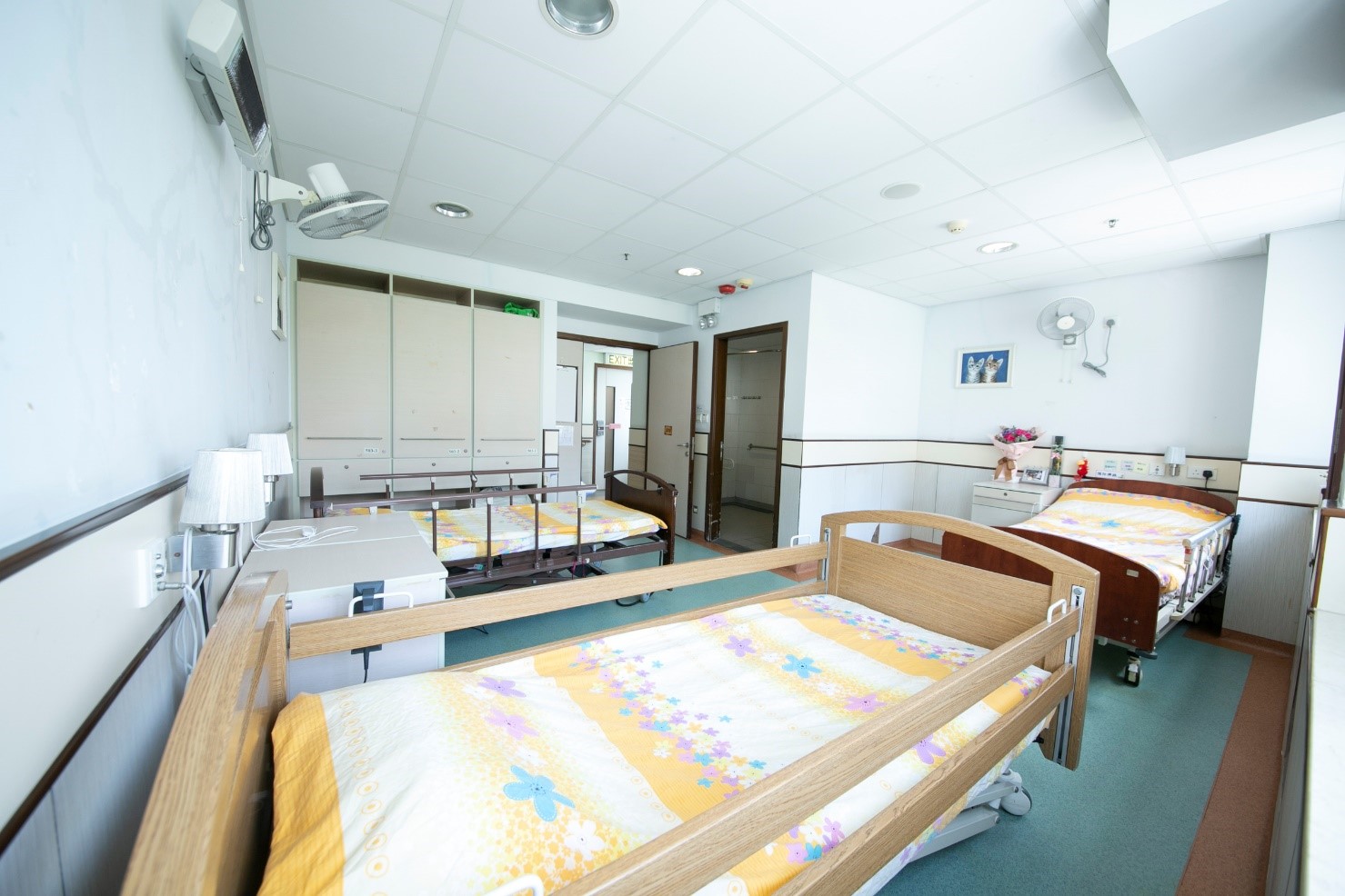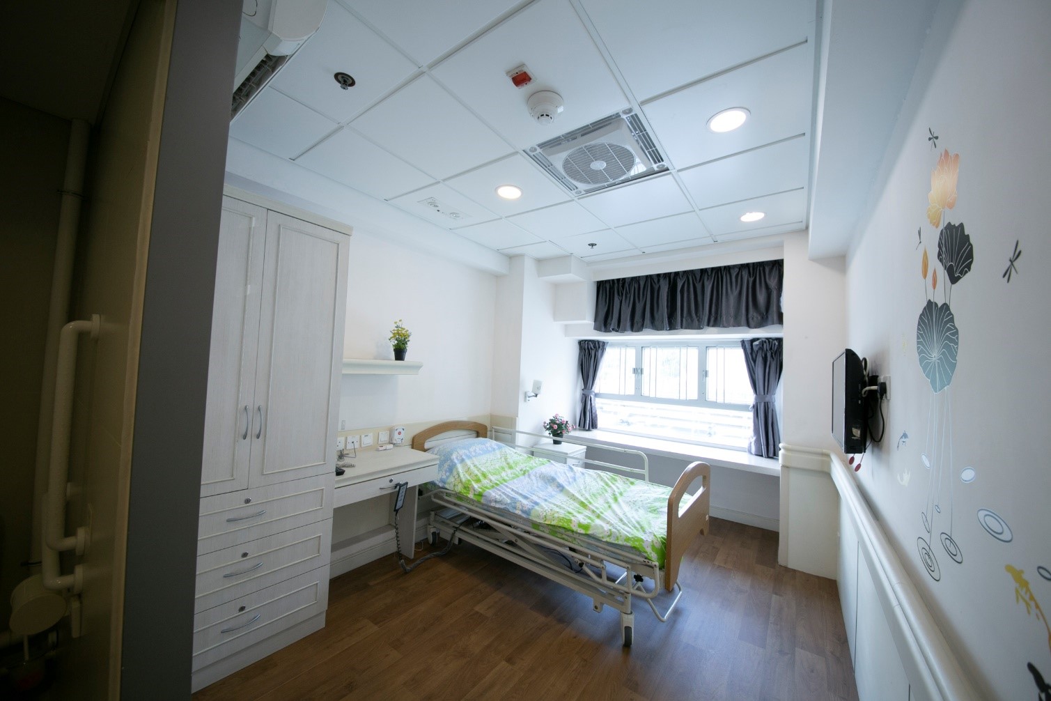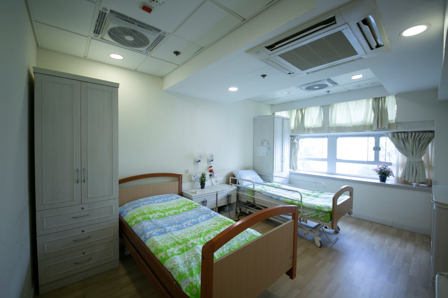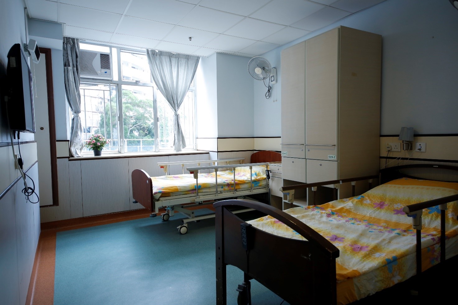 - 房間設有獨立洗手間、醫療床、求助鐘、床頭櫃、衣櫃等;