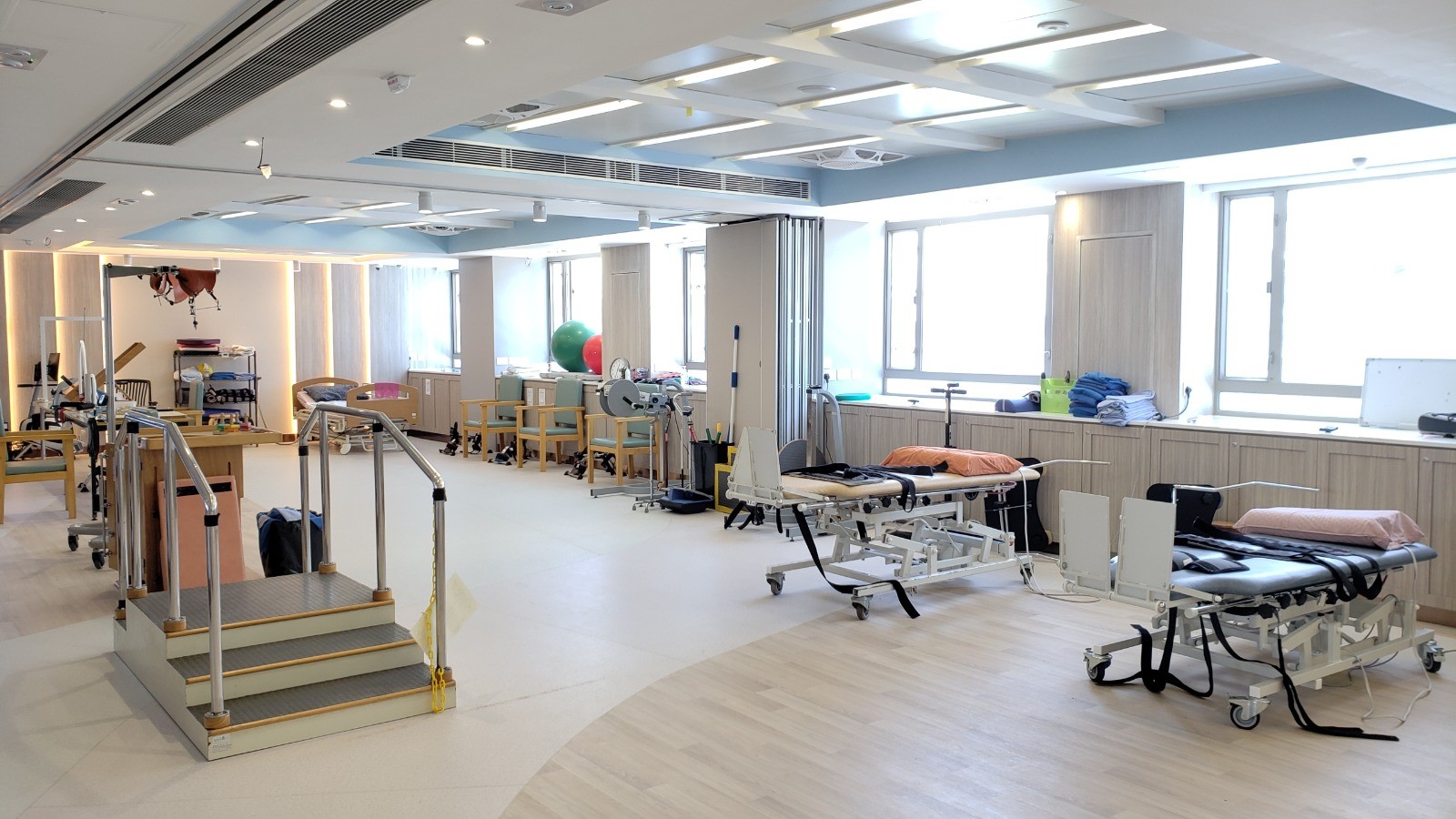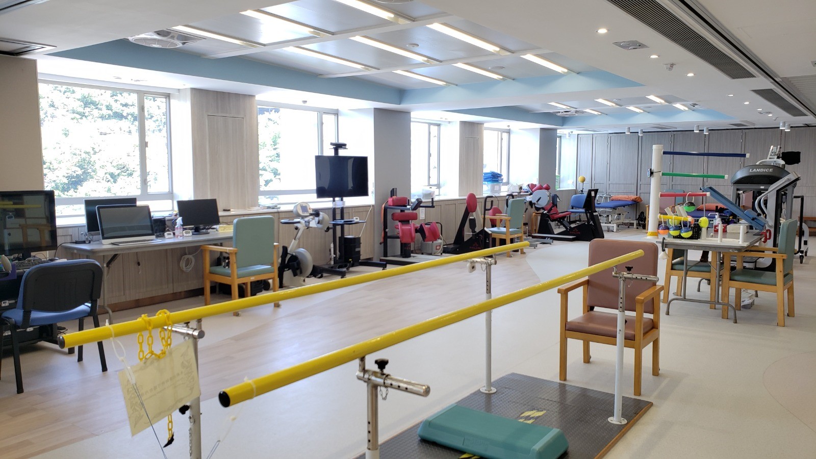 - 復康部所設醫療復康器材包括:漸進式步姿功能訓練器材、綜合電療設備、被動式肢體訓練器、電動企床等;