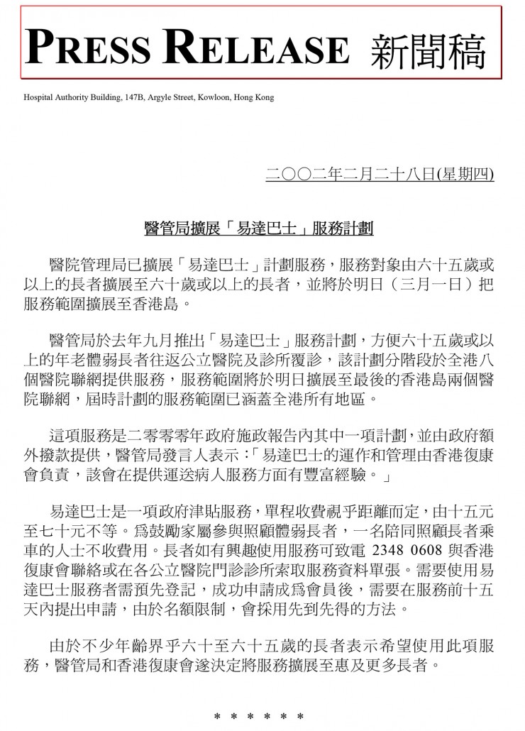 HA Press Release (Chinese Only)