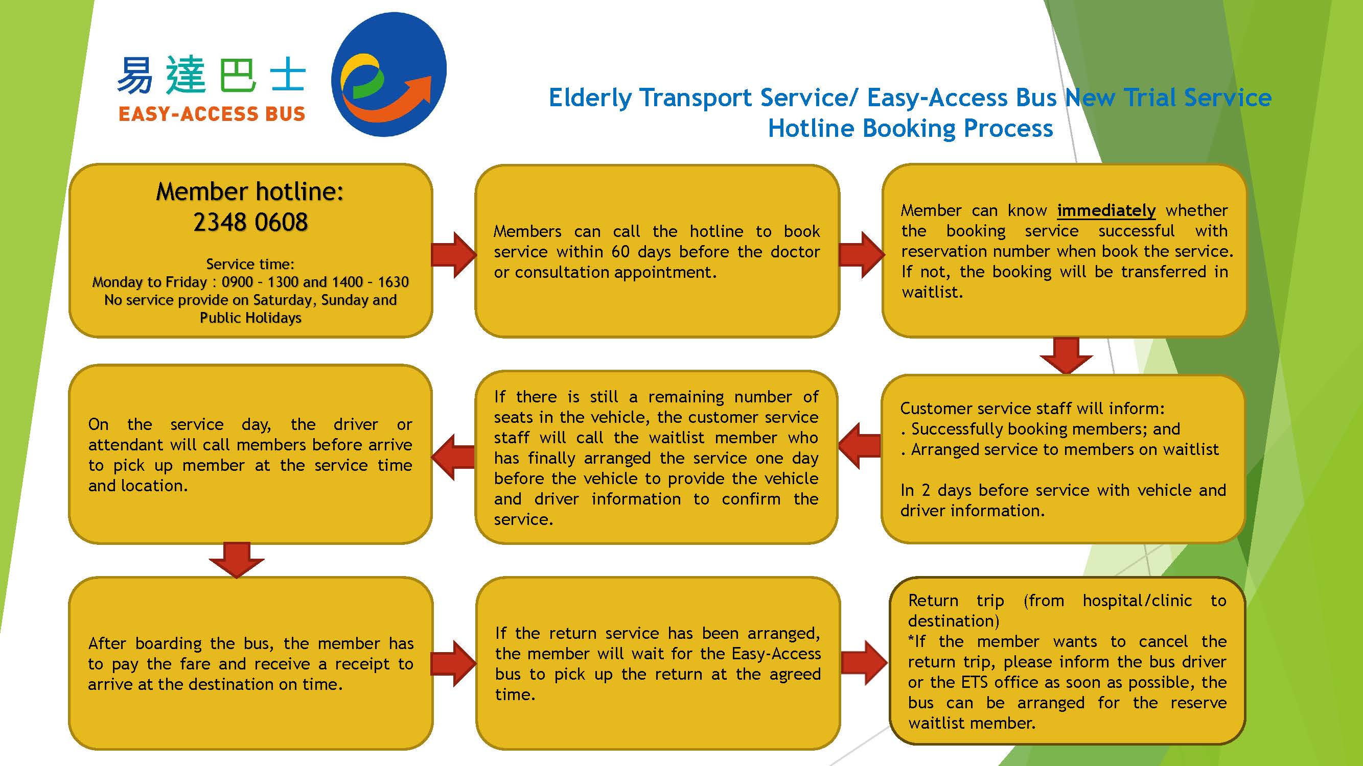 - Members are requested to be patient for any delay of service as traffic confusion might be a result of bad weather. Members can consider whether or not they would like to continue to use the service. ETS reserves the right to provide transport services according to transport conditions.