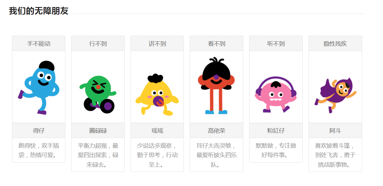 我们的无障朋友象征的是不同能力的朋友(People with Differences)、代表每一个人都是独特的,具有不同才能及强项,同时亦有不同限制……