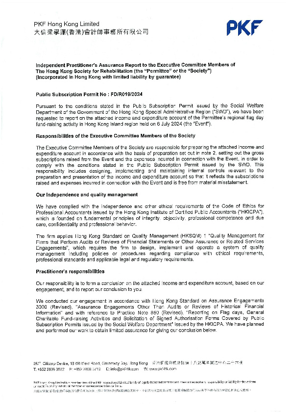 于二零二四年七月六日举行的香港岛分区卖旗日筹款活动审计报告(2024年10月4日)