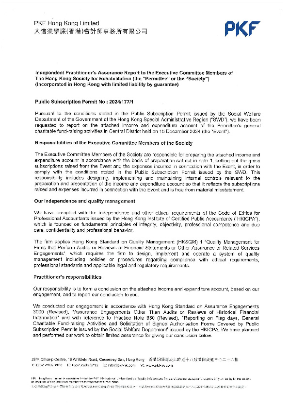 于二零二四年十二月十五日举行的中区一般慈善筹款活动审计报告(2025年2月28日)