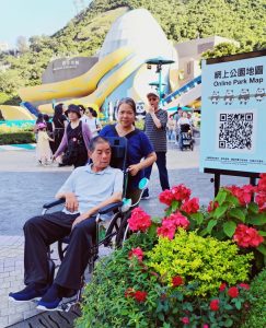 漸凍症患者照顧者吳太:能夠和先生一起去海洋公園,雖然有點累,但晚上他睡得很滿足,心情也開朗很多!